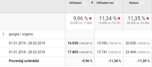 Putem observa in imaginea de mai jos ca deficitul de trafic organic este destul de mic (-9,96%)