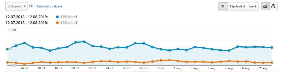 Comparatie trafic organic 12 Iulie 2019 – 12 August 2019 cu aceeasi perioada a anului trecut.