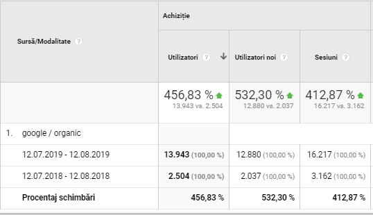 Dupa ce campania SEO a fost inceputa pe data de 12 Iulie 2018 a fost suficient timp sa recuperam tot ce s-a pierdut la migrare, inclusiv traficul organic.